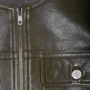 Zip sleeves,front pockets, front zip. Made in France. sz40 New, was considered for a photoshoot, but never worn. There is a faint scuff mark from a tape in front next to the zipper-it didn’t show up in the photos. This is from model's name taped to the garment.