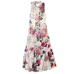 NEW Closet London Sleeveless V-Back Maxi Dress Womens Size 8 Tiered Floral Satin