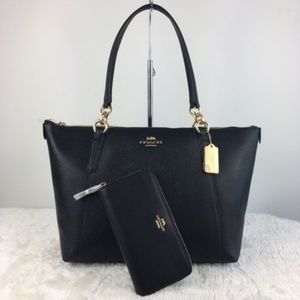 NEW Coach Ava Tote In Crossgrain Leather Handbag Black F57526 Wallet Set