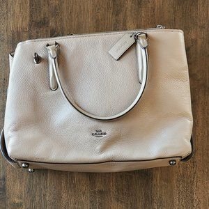 NEW Coach Brooklyn 34 Carryall Stone Pebbled Leather Large Convertible Satchel