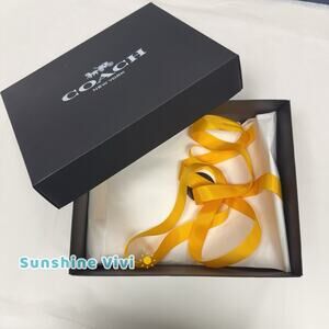 NEW Coach Bundle Black Gift Box 10"×8. 5"×4" Tissue Sticker yellow Ribbon