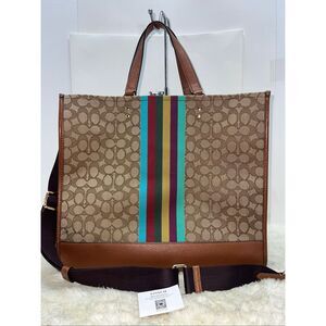 New Coach Extra Large DEMPSEY Tote 40 Handbag Signature Jacquard with stripe