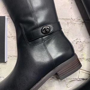 Size 6 Coach Emmie Semi Matte Calf Boots in Black. New in Box (box has a small tear in the lid- pictured), Never Tried On. MSRP: $380