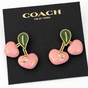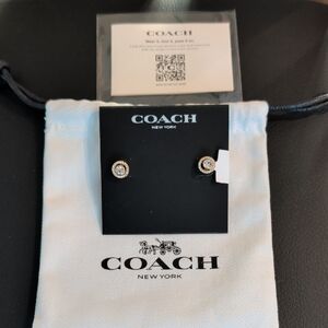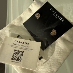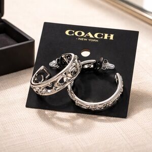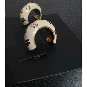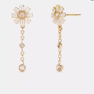 NEW Coach Enamel Signature Floral Huggie Earrings White Gold Dangle Stud