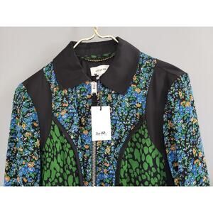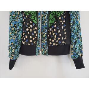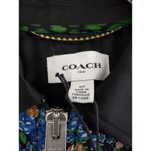 NEW Coach Framed Varsity Jacket Floral Multi Full Zip Black 100% Silk XS