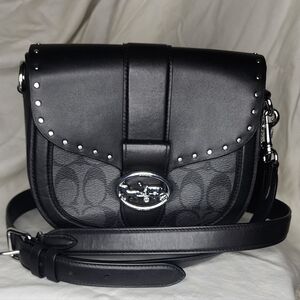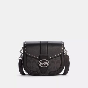 NEW Coach Georgie Saddle Bag In Colorblock Signature Canvas With Rivets Black