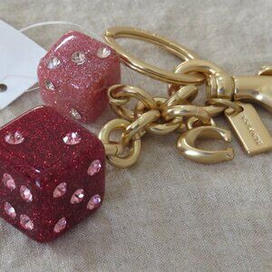 NEW Coach Glitter Resin Dice Cluster Bag Charm Keychain FOB Gold / Pink Multi