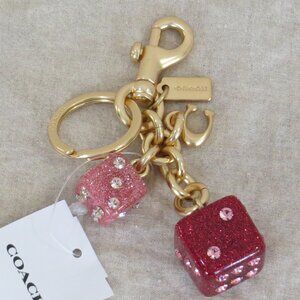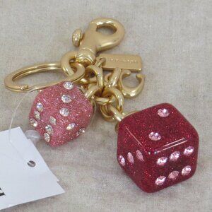 NEW Coach Glitter Resin Dice Cluster Bag Charm Keychain Gold / Pink Multi CH831