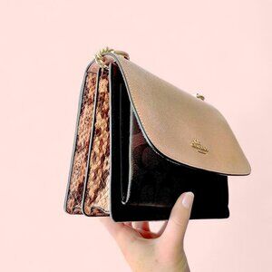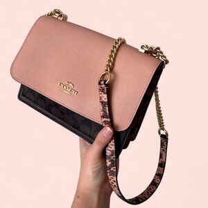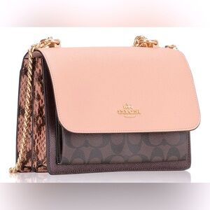 NEW Coach Klare Crossbody Bag Pink Signature Canvas Monogram Snakeskin Embossed