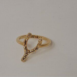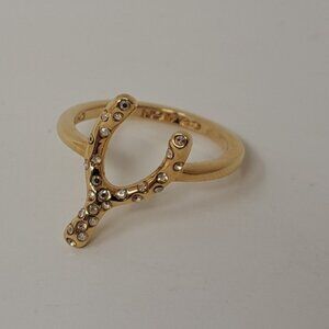 NEW Coach Lucky Pave Wishbone Ring Charm Mini Crystals Size 5