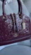 The interior is lined with brown polyester and has a semi-circle shape, with a gold hardware color that complements the plum color exterior.