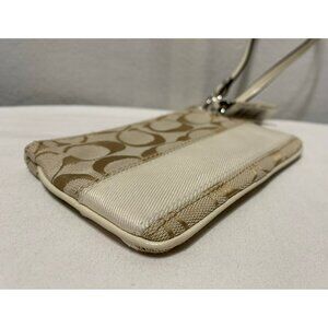 NEW Coach Signature Stripe Wristlet Light Khaki White Silver F42618