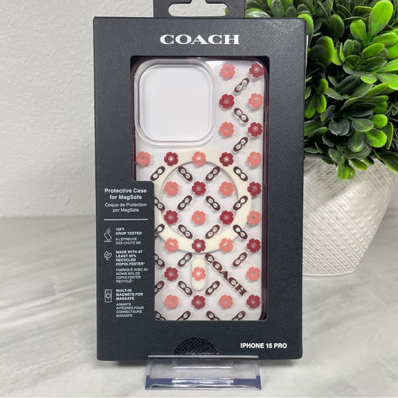 NEW Coach Tea Rose MagSafe iPhone 15 Pro Phone Case Logo Flowers Floral