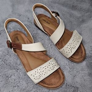 NEW! Cobb Hill Women's Size 7 White Tan Leather Sandals Zion Flats NIB