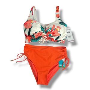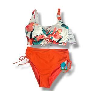 NEW Coco Reef Bikini Set Size Large 38DD White Floral Orange High Waist Ruched
