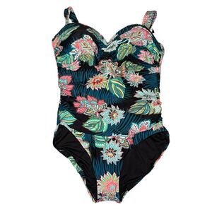 Meet the most charismatic one piece, the Coco Reef Charisma Bra Sized Pleated One Piece Swimsuit. A fun, tropical, lotus inspired print adorns a stylish silhouette paired with tummy control, molded cups and underwire offer the support you need in a flirty one piece, while the removable straps make it perfect for lineless tanning