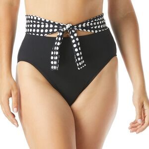 Sophisticated with a playful touch, these high-rise bikini bottoms from Coco Reef are punctuated with a fun polka-dot tie and cutout at the waist.