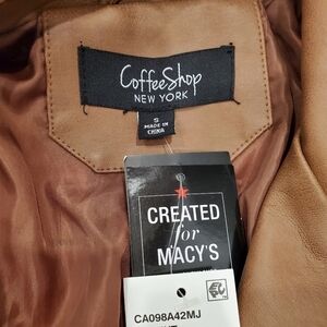 NWT CoffeeShop Juniors' Faux-Leather Moto Jacket Peanut Brown