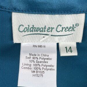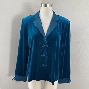 NEW Coldwater Creek Womens 14 Satin Bow Velvet Jacket Teal Blue Shoulder Pads