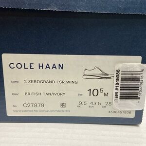 NEW Cole Haan 2 ZeroGrand LSR Wingtip Oxford C27879 Size 10.5M British Tan/Ivory