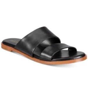 Cole Haan Anica Black Leather Double Strap Slide Flat Sandals NWOB