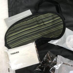Includes: Black Cole Haan American Airlines Drawstring Bag, Eye Mask, Dental