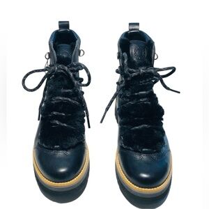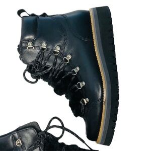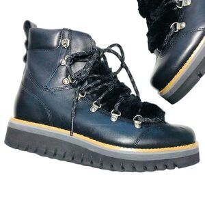 NEW Cole Haan Black ZeroGrand Lodge Hiker Lace-Up Faux Fur Ankle Boots size 6