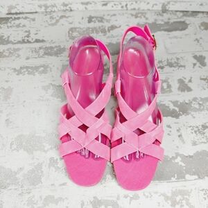 NEW Cole Haan Crystal Pink Leather Buckle Sling Back Summer Wedge Sandals T11
