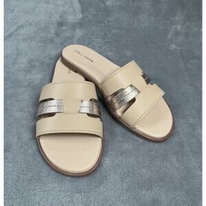 NEW! Cole Haan Flynn Slotted Slide Women's Sandal Nude & Metallic Leather 6.5 B