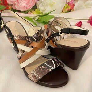 NEW Cole Haan Mariana Wedge Sandal Shoes Womens Size 10B Open Toe Leather
