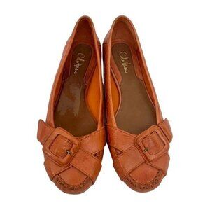 NEW Cole Haan Size 8 Orange Leather Slip-On Ballet Loafers w/ Buckle Accent