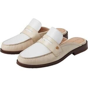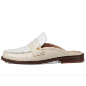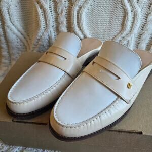 NEW Cole Haan Women Lux Pinch Penny Slip On Leather Mules Loafer Size 11B Cream