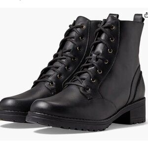 NEW Cole Haan Women's 6 CAMEA Combat Boot, Black Waterproof Leather Lace up