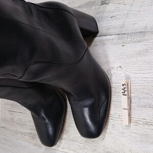 NEW Cole Haan Women's Valley Black Leather Square-Toe Block Heel Boots #1443