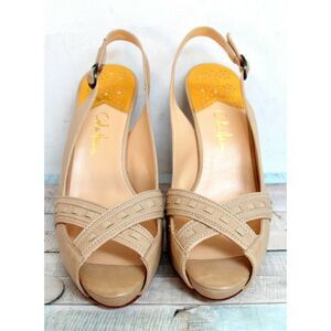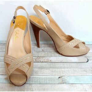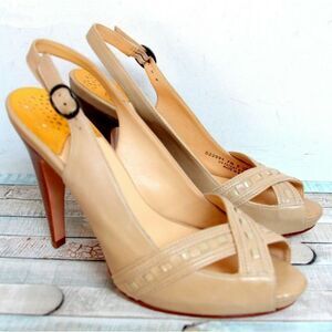 NEW Cole Haan BEIGE GENUINE LEATHER 4.5"HIGH HEEL PEEP TOE SLINGBACK SHOES 37.5B