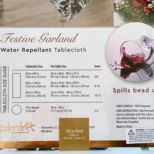 NEW in Package - Colordrift Christmas Festive Garland Fabric Tablecloth 70” Round