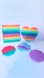 Set of 5 colorful Pop It fidget toys in various shapes. Pop its Includes rainbow square and heart, purple hexagon, and multicolor circle.