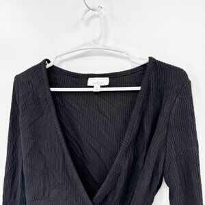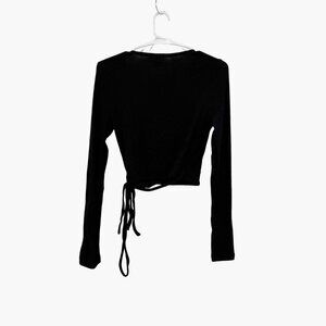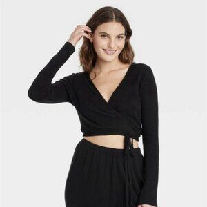 NEW Colsie Long Sleeve Cropped Ribbed Cozy Wrap Top - Black