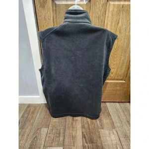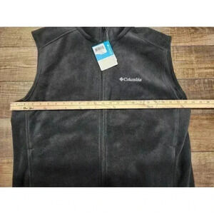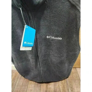 This Columbia fleece vest is a versatile piece that's perfect for outdoor activities like hiking, camping, and running. It features a stand-up collar and full zip closure, along with zipped pockets for convenient storage. The vest is made of polyester and has a solid pattern with an embroidered logo accent.