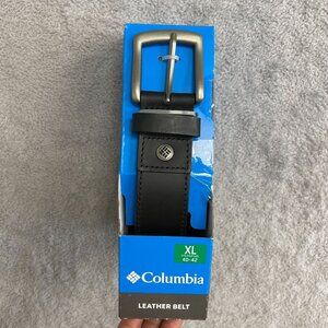 NEW Columbia Men's XL Size 40-42 Black Leather Belt Silver Buckle