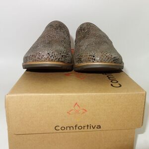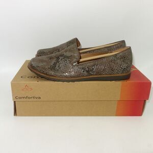 NEW Comfortiva Ryen Slip On Leather Loafer Pewter Taupe Snake print Women's 6 W