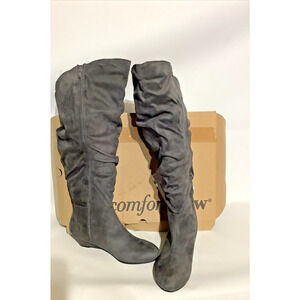 NEW Comfortview Tamara Knee Boots 9M Wide Calf Muscular Legs Shirred Slate Gray