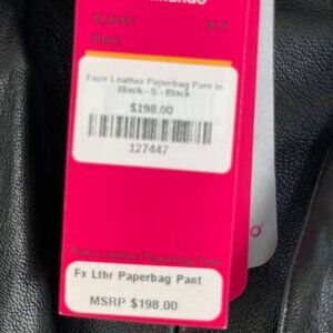 NEW Commando Womens Small Black Faux Leather Pants Paperbag Waist Ankle