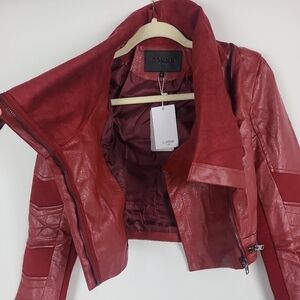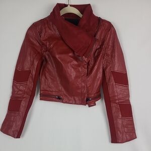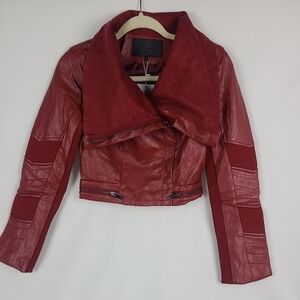Comme USA Asymmetrical Zip Vegan Faux Red Suede / Leather Jacket, size S, M, L