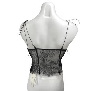 NEW Commense Women's Black Floral Lace Sheer Sleeveless Tie Shoulder Cami Camisole Lingerie Crop Tank Top Size S