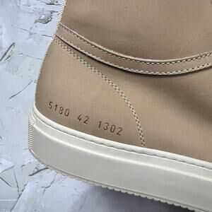 commonprojects sneakers high top nubuck minimalist italian designer streetwear luxe casual unisex size42 tan cream rubber sole eu42 5180 madeinitaly luxury