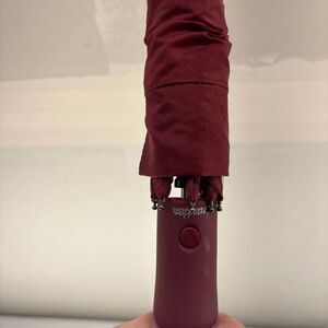 NEW Compact Automatic Open Rainkist Maroon White Nylon Umbrella 37” W/Cover