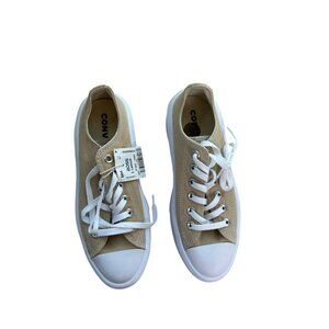 New with tags pair of women’s size 8 Chuck Taylor Converse low top platforms sneakers in nutty granola beige.