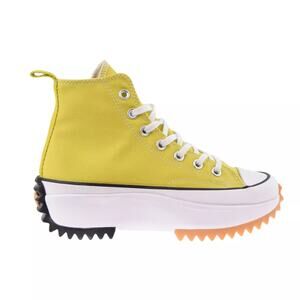 Elevate your street style with these bold Converse Run Star Hike Hi sneakers in Bitter Lemon. Featuring a durable canvas upper, signature star ankle patch, chunky platform midsole, and a jagged rubber outsole for standout style and traction. A modern twist on the classic Chuck Taylor, perfect for casual streetwear and daily wear.