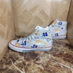 All-over graphics brings the winter fun with playful wolf and fox friends and colorful ski gear or paw prints. Complete with Chuck Taylor classics, like a woven All Star tongue label and diamond pattern outsole.